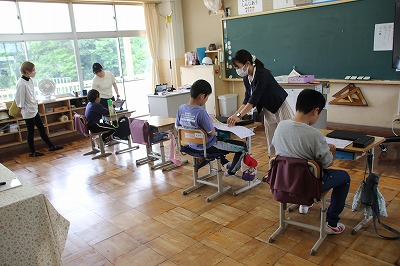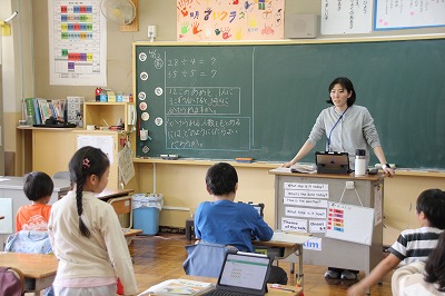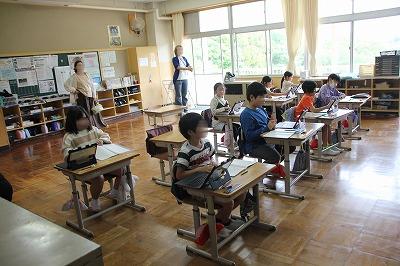2~6年生でテストが行われている頃、1年生教室にお邪魔すると、担任による読み聞かせが行われていました。